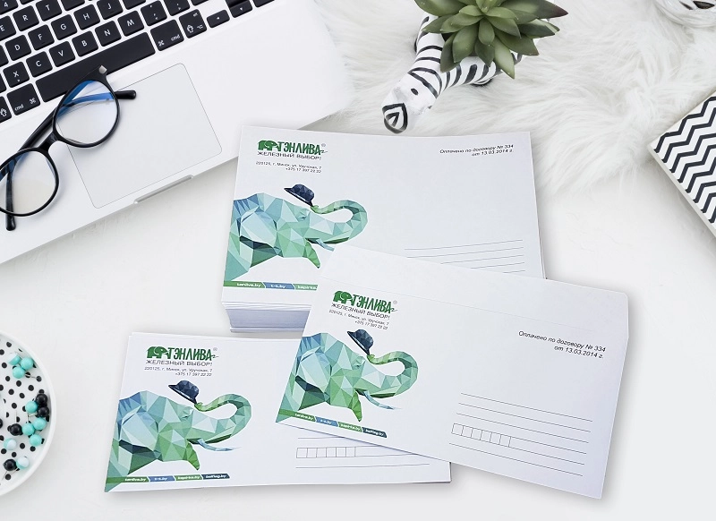 Первое, что видит человек, получая письмо – это конверт. Важность его как маркетингового инструмента обычно недооценивается, хотя именно он во многих случаях формирует первое впечатление о фирме.- При продумывании дизайна следует учесть, что полноцветная печать всегда стоит дороже, чем чёрно-белая. В больших тиражах цена также может зависеть от количества используемых цветов и площади запечатки. Если вы предпочитаете черно-белый вариант, по крайней мере, добавьте в макет графические элементы и/или логотип.